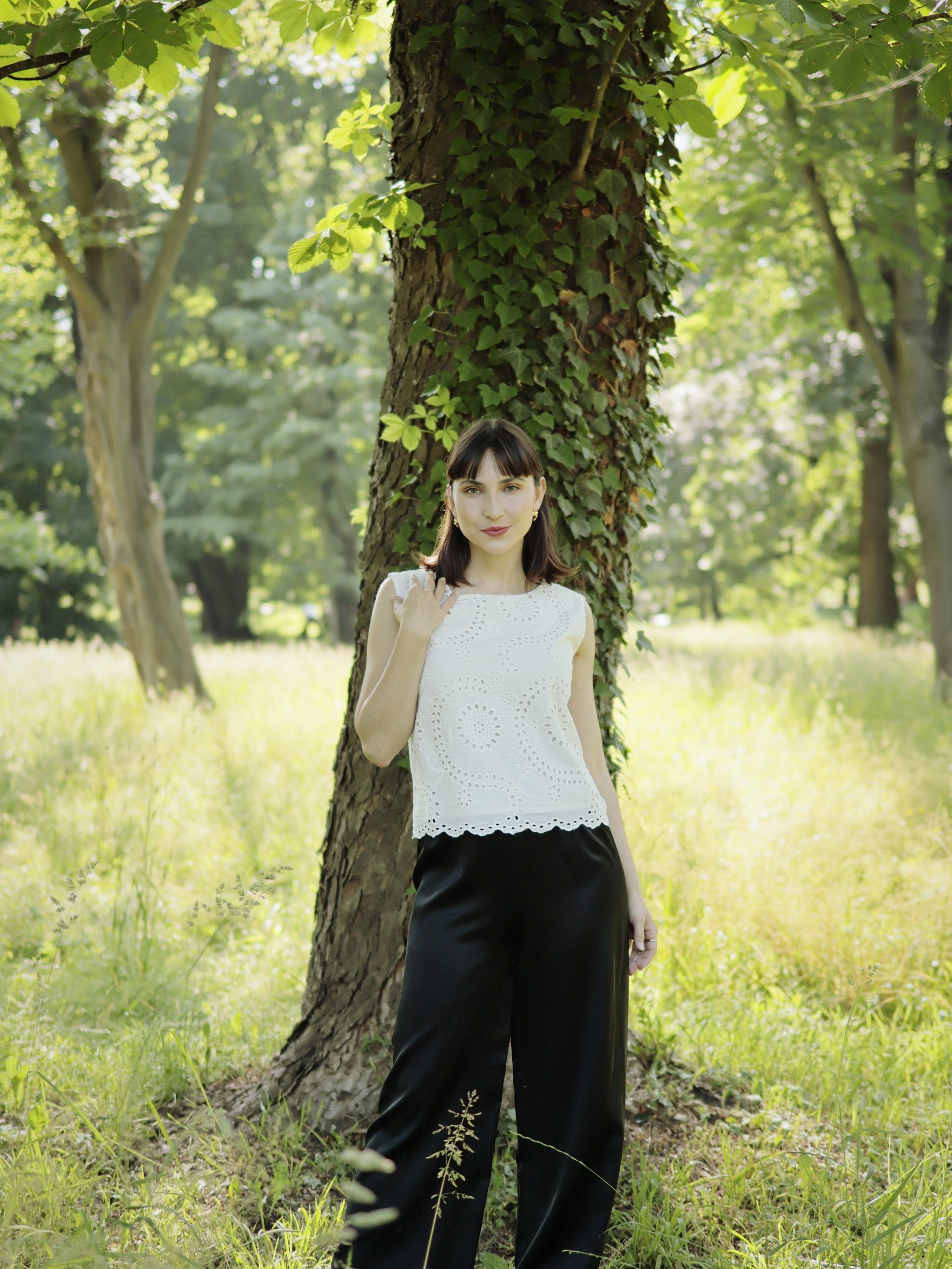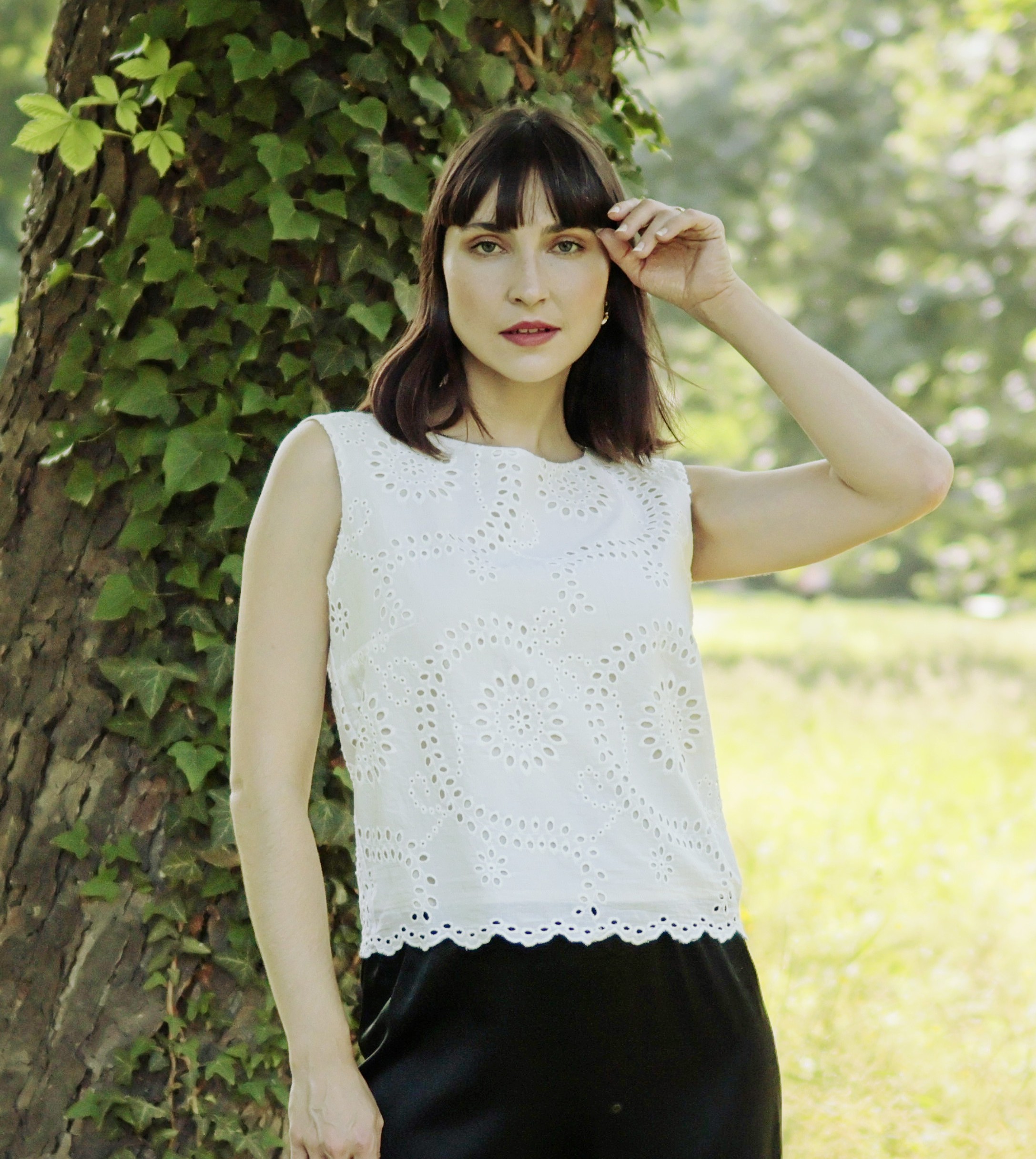 top ze 100% bavlněné madeirové krajky podšitý směsí bavlny a hedvábí ideální pro horké letní dny nebo po celý rok pod sako
